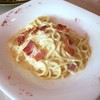 ร้านนี้เป็นร้านอาหารในร้านสุริยา ขายของเก่าที่นำเข้ามาจากญี่ปุ่น ทั้งที่เก่าแบบมีคุณค่า และเก่าแบบ junk ลูกค้ามาดูของแล้วก็มักแวะทานอาหารและเครื่องดื่มกันที่นี่ น้องปอบเคยลองชิมผัดไทแล้วอร่อยดีค่ะ เลยขอลองสปาฯ คาร์โบฯ ดูบ้าง ผลลัพธ์คือ จัดมาเส้นเหนียวนุ่มดี ครีมซอสครีมมี่ดี รสอร่อยดีเลยค่ะ อาหารที่นี่ดีใช้ได้เลยคร่าาดูเพิ่มเติม