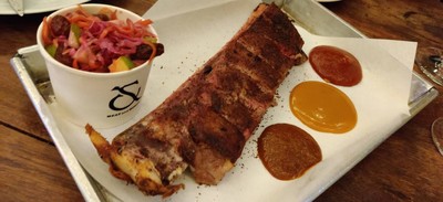 ร้านอยู่ชั้น supermarket ใน The Commons ทองหล่อ 17 (อยู่ติดกับร้าน Peppina) เมนูร้านไม่เยอะค่ะ มีแค่ BBQ Ribs แบบ 6 hr-smoked และ 8 hr-smoked และ Burger กับ side dish ต่างๆ อีกประมาณ 7-8 อย่าง ส่วนตัวเคยลองแต่ BBQ Ribs ทั้งแบบ 6 hr และ 8 hr ค่ะ ชอบทั้งสองแบบนะ แต่กลับรู้สึกว่าชอบ 6 hr มากกว่า คือ เนื้อมันมีความเหนียวหน่อยๆ เคี้ยวแล้วเหมือนยังมีเส้นไขมันแทรกหน่อยๆ อร่อยดี แต่แบบ 8 hr เนื้อจะ...อ่านต่อ