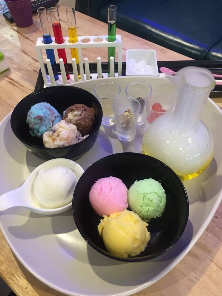 เป็นร้านที่ตกแต่งได้สวย มีโมเดล Super Hero , kitty , Car จัดร้านได้โอเค พร้อมไอศครีมอร่อย สไตล์ Homemade ถ้ามีเด็กมาทาน บอกเลยเด็กชอบแน่ เพราะมีเมนูไอศครีมทดลองวิทยาศาสตร์ด้วย เหมาะมากกับเด็กวัยเรียนรู้ และยังได้ทานไอศครีม+ทอปปิ้งอร่อย โอเค คือใช่ คือดีดูเพิ่มเติม
