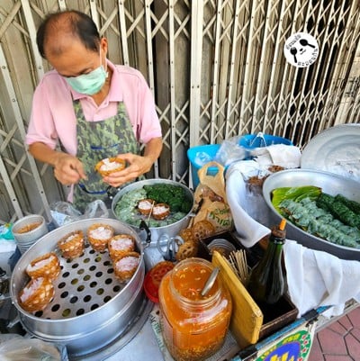 กลับมาซ้ำอีกรอบ รอบก่อนลืมลองขนมจีบ มารอบนี้คิวเยอะนอนานหน่อย สั่งขนมจีบใส่มใบตองแห้งมสเหมือนเดิม 25 บ. ราดพริกน้ำส้มซีอิ๊วพร้อมทาน กากหมํกระเทียมเจียวมาแบบเต็มๆ กรอบๆ ขนมจีบรสชาติใช้ได้เหมือนตอนสมัยเด็กทาน 🕥 14:00-16:00 (จ-ศ) 📞 0859014927 📍 ถนนพระสุเมรุ , หน้าบางลำพูเพลสดูเพิ่มเติม
