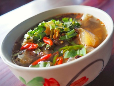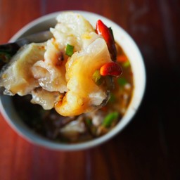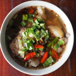50% ของรีวิวบอกว่าร้านนี้เหมาะกับ เพื่อนฝูงมาเมืองกาญจน์นึกถึงอาหารป่า แต่คงไม่มีสัตว์ป่าให้กินจริงๆแล้วล่ะ แต่ถ้าใครทานเนื้อวัว ในรสชาติอาหารป่า ลองมาทานร้านนี้ ร้านต้มกีบวัว เป็นร้านสองห้องเล็กๆ แถวทางเข้าหมู่บ้านไพศาลวิลล์ ถนนอู่ทอง หน้าร้านรกๆสักหน่อย โต๊ะมีไม่มากนัก แต่มีแฟนประจำเพียบ เข้ามากลิ่นเครื่องแกงกับกลิ่นเนื้อต้มหอมมาก จริงๆแล้วร้านก็ทำอาหารตามสั่งหลายอย่าง ทีเด็ดอยู่ตรงชิ้นส่วนเนื้อวัวที่หากินยาก เช่น กีบวัว พื้นท้อง ผั...อ่านต่อ
