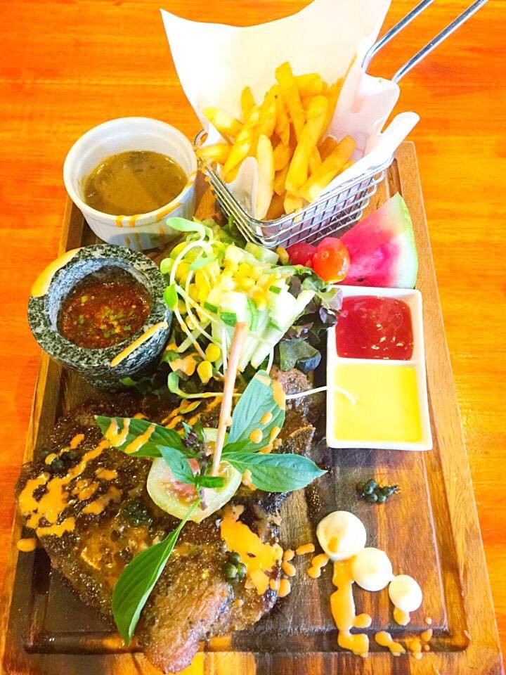 ร้านนี้บรรยากาศสบายๆ น่านั่ง บริการดี จอดรถริมถนน อาหารหลากหลาย ตกแต่งจานสวย รสชาติดี เมนูที่สั่ง - ที-โบน สเต็ก สเต็กเนื้อนุ่มกำลังดี มีน้ำจิ้มแจ่วมาให้ด้วย ผักสลัดสดอร่อย - ช็อคโกแลตมูส รสชาติดีแต่หวานไปนิด - มอคค่าร้อน กาแฟหอมเข้มกำลังดี อร่อยดูเพิ่มเติม