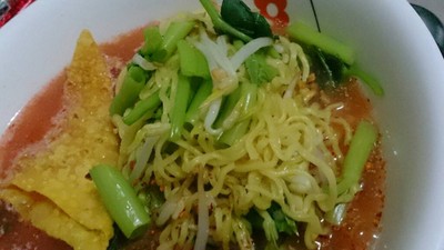 100% ของรีวิวบอกว่าร้านนี้เหมาะกับ หิวโซร้านรถเข็นที่ตั้งขายอยู่ใกล้บ้าน อาภัพอับโชค ออกไปซื้อมาทานในวันที่ฝนกระหน่ำหน้าหนาว อุตส่าห์สั่งไว้ ก่อนแวะไปซื้อของที่อื่นกลับมา เกือบสิบนาทีได้(รวมๆเวลาที่รอให้ฝนซา) ปรากฎยังไม่ได้ทำให้เพราะลืมว่าสั่งอะไร 😢😢 เลยต้องตากฝนสั่งใหม่อีกรอบ บะหมี่เย็นตาโฟต้มยำ 35 บาท เส้นบะหมี่ไม่ค่อยเหนียว นุ่มเท่าไหร่ ออกเป็นแป้งเลย เลือดนุ่มแต่มีกลิ่นชัด ลูกชิ้นกุ้งคาวนิดๆ น้ำต้มยำรสไม่จัดเลย เอาเป็นว่ารวมๆ ไ...อ่านต่อ