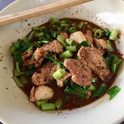 ปกติกินก๋วยเตี๋ยวหมูน้ำตกบ่อยนะ พอดีนั่งรถผ่านแล้วเห็นร้านเปิดใหม่ก็เลยแวะมาลองซักหน่อย ร้านอยู่ในซ.สินสาคร ข้างร้าน Blackjack Bistro เยื้อง ๆ สินสาครวิลเลจ ตัวร้านเป็นแบบโอเพ่นแอร์ ไม่ใหญ่มากมีที่นั่งประมาณ 10-12 โต๊ะ ถ้ามาช้าหน่อยประมาณเที่ยงนิด ๆ ก็อาจต้องยืนรอโต๊ะ เมนูของที่ร้านขายก๋วยเตี๋ยวน้ำตกหมูไม่มีเนื้อ แต่ก็มีออฟชั่นให้เลือกทั้งก๋วยเตี๋ยวเรือน้ำตก , น้ำแดง(ยังไม่เคยลอง แต่คิดว่าน...อ่านต่อ