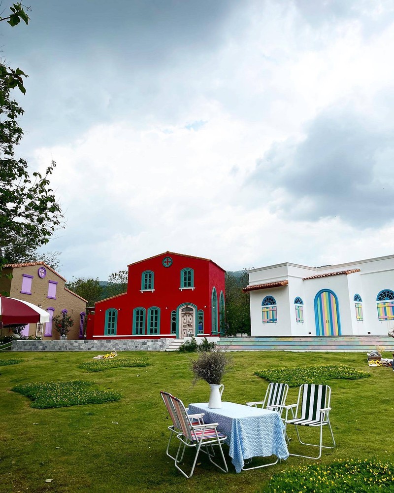 ตึกสไสต์ยุโรปสีสันสดใสมาก ถ่ายรูปตัดกับท้องฟ้าทุ่งหญ้าออกมาน่านักฟุดๆ คาเฟ่มีบริการเครื่องดื่มและอาหารเมนูหลากหลาย พร้อมบริการห้องพักตรงตึกสีม่วงด้วยค่ะ ตอนไปเราสั่งเค้กสตอเบอร์รี่ครีมสดมากินคู่กับาชาไทยรสชาติใช้ได้ ตัวเค้กแต่งได้น่ากินมาก ♡ดูเพิ่มเติม