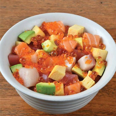 ข้าวหน้าปลาดิบหั่นเต๋ารวม