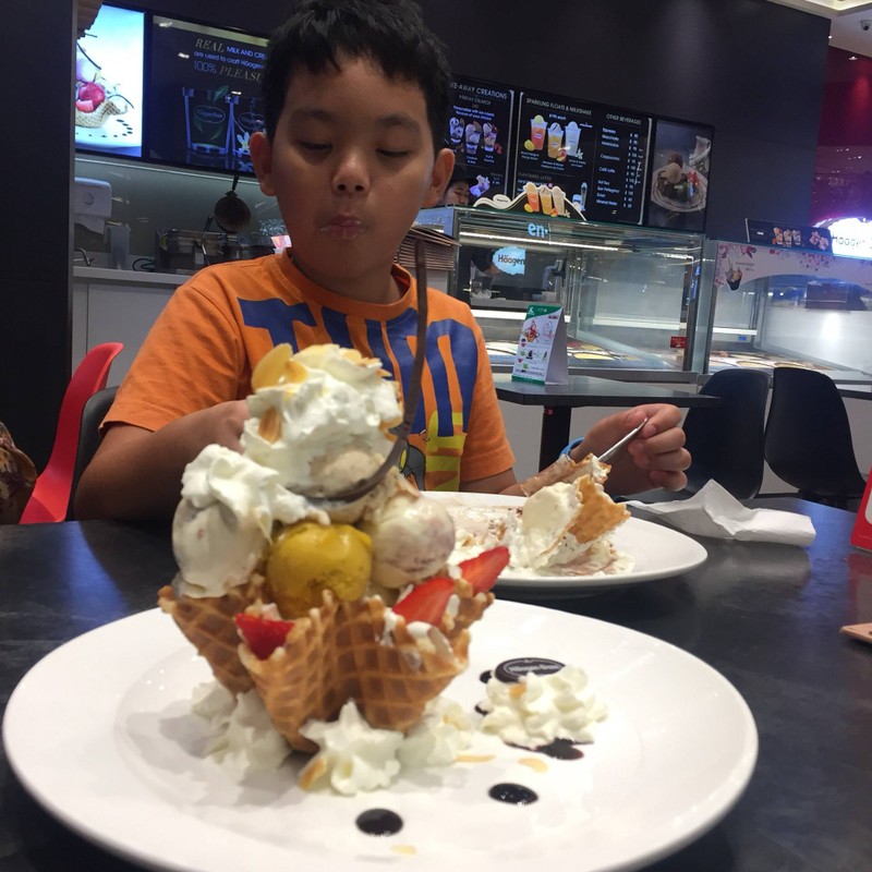 บรรยากาศดีที่นั่งมี20กว่าได้ ที่สำคัญคนน้อยดี สั่งเมนู Banana Caramelอะไรสักอย่าง เลือกไอศกรีม3รสตามชอบได้ที่เลือกไปมีBelgian Chocolate Ice Cream Macadamia Nut Ice Cream Mango Sorbet กับแป้งกรอบBiscuitสักอย่างไม่แน่ใจ รสชาติดีงามตามราคาส่วนตัวชอบทุกรสยกเว้นรสมะม่วงออกจะแปลกหน่อยเหมือนมะม่วงอบแห้งไม่ค่อยชอบ ส่วนราคาจำราคาไม่ได้แต่ไม่น่าถึง400ดูเพิ่มเติม