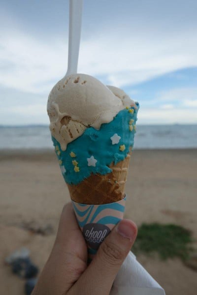 Skoop Beach Cafe ร้านไอศกรีมริมทะเล อยู่ริมชายหาดข้างโรงแรม Veranda Resort Pattaya มาพักที่โรงแรมเดินเล่นชายหาดเป็นต้องสะดุดตากับร้านไอศกรีมร้านนี้ ตกแต่งสีสันสดใส บรรยากาศดี บวกกับอากาศร้อนๆ จนต้องพาตัวเองไปที่หน้าเคาน์เตอร์ สั่งFancy Cone + 1Scoop = 120Baht นอกจากไอศกรีมแล้วทางร้านมีเมนู French Fries, Burgers, Croffes, Toast และเครื่องดื่มต่างๆ ดื่มคลายร้อน เหมาะกับอากาศร้อนๆข...อ่านต่อ