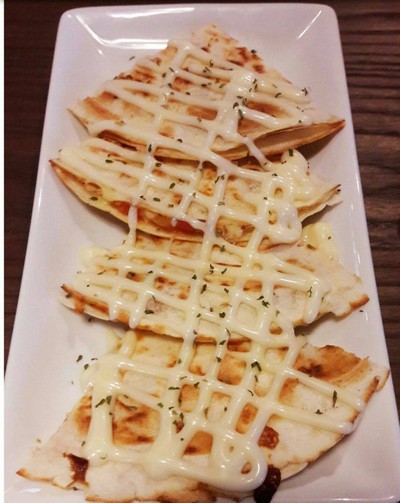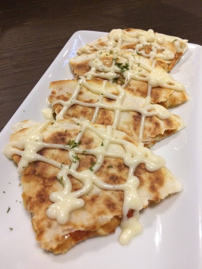 แป้งตอติย่าย่างผิวกรอบใส่ไส้บาร์บีคิวไก่และชีส