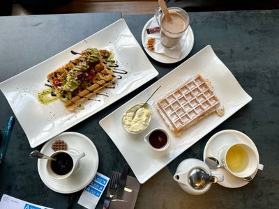 100% ของรีวิวบอกว่าร้านนี้เหมาะกับ เพื่อนฝูงหาที่หลบฝนกับลมหนาว นั่งเขียนโปสการ์ดซักแป๊บ บรรยากาศ - ร้านสีดำโดดเด่นเห็นชัดข้างหน้ามหาวิหารใหญ่ใจกลางเมือง มีรูปปั้นเด็กนอนทับหมาห่มผ้าห่มพื้นอยู่ด้วย โซนที่นั่งมีข้างในร้านหน้าบาร์ หรือจะนั่งข้างนอกใต้กันสาดก็ได้ เมนูของร้านจะเป็นวาฟเฟิลหน้าต่างๆทั้งคาวหวาน และมีเครื่องดื่มร้อนทั้งชากาแฟ ช็อกโกแลตร้อน รวมถึงเบียร์ให้เลือกสั่ง นั่งข้างนอกจะมีลมนิดนึงแต่หายใจคล่อง แต่ข้อเสียคือคนมานั่งสูบบุห...อ่านต่อ