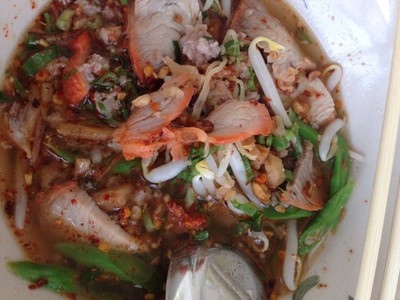 ร้านเปิดมาได้ไม่นานแต่คนเยอะตลอดเพราะร้านก๋วยเตี๋ยวที่ทานง่ายๆสะดวกแถมติดเครื่องปรับอากาศโดยที่ไม่ต้องแวะเข้าห้างออกจะหายากอยู่เหมือนกันเมนูหลักยังเป็นก๋วยเตี๋ยวสุโขทัยจุดเด่นคือใส่ถั่วฝักยาวหั่นแฉลบ มีเมนูพิเศษ_ผัดไทย คั่วไก่ ผัดซีอิ้ว ขนมเบื้อง ส่วนของหวานมีแค่ลอดช่องและเฉาก๊วย เครื่องดื่มมีน้ำสมุนไพรตะไคร้เก๊กฮวยกระเจี๊ยบ ที่ตั้งร้าน_ถนนโยธินพัฒนาติดหมู่บ้านgrand park ฝั่งตรงข้ามเยื้องmint...อ่านต่อ