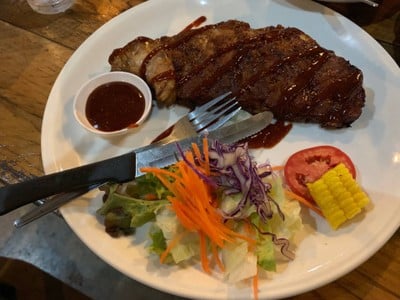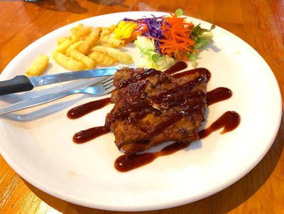 สเต็กร้านดังแห่งเมืองราชบุรี อยู่นอกเมืองนิดๆแต่หาไม่ยาก เข้าไปถึงร้านหยิบใบรับออร์เดอร์ที่หน้าร้าน แล้วไปหาโต๊ะนั่ง ถ้าฝนไม่ตกก็มีที่นั่งโซนด้านนอกด้วย วันหยุดหาโต๊ะยากหน่อยอาจจะต้องนั่งรอ สเต็กอร่อย นุ่ม มีกลิ่นของเตาถ่านหอมๆ ราคาถูกทุกอย่าง ต้องลองเอง😋ดูเพิ่มเติม