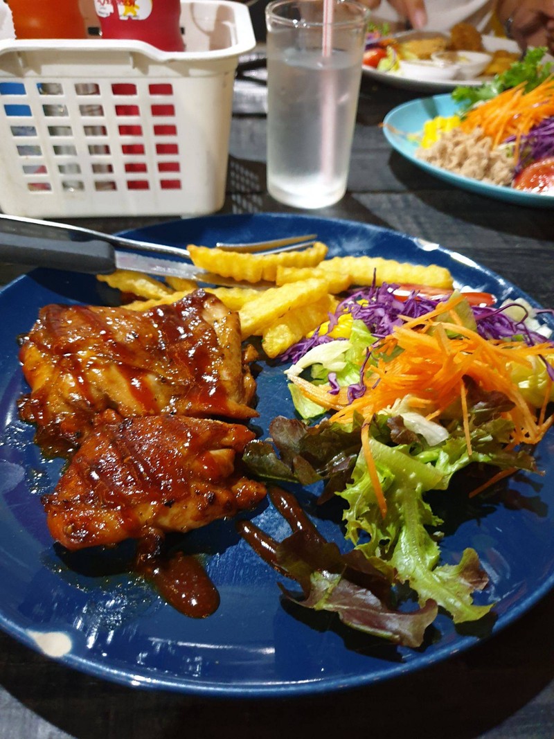 เป็นร้านที่คนเยอะ รอนานมากกกกกกกก เพราะใช้เตาถ่าน บวกกับ คนกินเยอะ ทำให้ช้าาาาาาาาาาาาาาาา สเต็ก : อร่อย ได้เยอะ ราคาไม่แพง มีเมนูให้เลือก หมู ปลา ไก่ สลัด มีน้ำหวาน โซดา ต่างๆ ใส่ขวดโหลแก้ว น่ารักดี ร้านตั้งอยู่ในตลาดเดอะนาย ที่นั่งเยอะพอสมควร มีที่จอดรถกว้างขวาง หากไปช่วงคนเยอะๆ ต้องรอคิว ควรเผื่อเวลาไปกินดูเพิ่มเติม