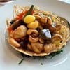 อาหารจีนแนวครอบครัวบนถนนพรานนก-พุทธมณฑลสาย4 รสชาติกลางๆ อันที่ทานแล้วใช้ได้มีข้าวผัดหน่ำเลี้ยบ ผัดมาหอม ไม่แฉะเกินไป กับปอเปี๊ยะหมูแดงที่ทำเป็นรูปสามเหลี่ยม โกยซีหมี่กับหมี่ฮ่องกงก็โอเค เป็ดปักกิ่งเลือกทำได้หนึ่งอย่าง เนื้อเป็ดนุ่มอยู่ หนังเป็ดแล่ติดมันนิดหน่อย แป้งหนาและดึงแล้วขาด ร้านใหญ่ โต๊ะไม่แน่นเกินไปจนอึดอัดดูเพิ่มเติม
