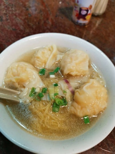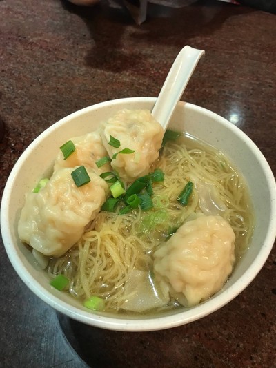 ตั้งใจมากินร้านนี้เลย ตามหนังสือแนะนำ และก็ไม่เสียดายเลยที่ได้มา เป็นร้านเล็กๆอยู่ย่านจิมซาจุ่ย ลูกค้ามีมาเรื่อยๆ ตอนแรกจะสั่งแต่เกี๊ยวกุ้งน้ำ แต่คนขายชี้แล้วก็พูดจีนใส่ประมาณว่าแนะนำให้กินบะหมี่ด้วย เลยได้มาเป็นบะหมี่น้ำเกี๊ยวกุ้ง ราคา 31 เหรียญฮ่องกง บะหมี่เส้นเด้งและให้เยอะมาก กินได้สองคนเลย ตัวเกี๊ยวกุ้งก็ชิ้นโตจริงๆ เนื้อกุ้งกรอบเด้ง ไม่เหมือนบ้านเราเลย แต่ตัวน้ำซุปอาจจะจืดไปหน่อย ไม่ค่อยเ...อ่านต่อ