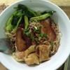 ขับรถผ่านแล้วก็ต้องเลี้ยวกลับมาด้วยความอยากรู้และอยากกิน เข้ามาปุ๊บสะดุดตากับป้าย "กินดิบไม่ได้ ขอร้อง .... อย่าเร่ง" ทำเอาชะงักไปเลย เจ้าของร้านจริงๆอัธยาศัยดีครับ เห็นมีเมนูสเต็กหมูแดงเลยสั่งมาชิม เป็นบะหมี่หมูแดงแห้งที่มาพร้อมเครื่องเคียงที่มี่ เกี๊ยว หมูแดง ไข่ลวก และผักลวก ราดน้ำหมูแดง มาพอฉ่ำๆ หมูแดงเค้าหวานจากข้างใน อร่อยแบบไม่ต้องปรุง ส่วนเส้นหมี่เป็นเส้นทำเอง ลวกสด เหนียวนุ่มมาก น้ำซ๊...อ่านต่อ