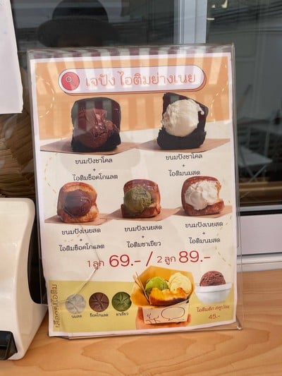 ✏️ review #Wongnaisongkran2023 Japa[g] เจปังไอติมย่างเนยย่านซอยอารีย์ ติดอาคารปิยวรรณ การเดินทางมานั่งบีทีเอสลงสถานีอารีย์ ฝั่งตรงข้าม La villa ร้านอยู่ในสุด วิธีการสั่งคือเลือกขนมปังบัน มีขนมปังเนยสด และขนมปังชาโคล ไอศกรีมมีรถงาดำ กะทิ ชาเขียว ช็อกโกแลต นมสด อันอื่นจะรสจางๆเราเลยเลือกรสชาเขียวและรสช็อกโกแลต ราคา69 บาท 2 รส 89 บาท Scoop ละ 45 บาท เนื้อขนมปังจะกรอบๆหอมเนยเลี่ยนนิดนึง ไอศกรีมเนื...อ่านต่อ