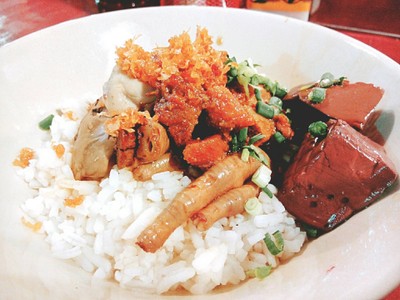 เป็นข้าวต้มตักขึ้นมาสะเด็ดน้ำ ใส่เครื่องได้ 1 ถึง 2 อย่าง แยกน้ำซุปเข้มข้น โรยด้วยกระเทียมเจียวและต้นหอม