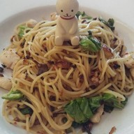 100% ของรีวิวบอกว่าร้านนี้เหมาะกับ เพื่อนฝูงร้านนี้เคยทานเมื่อสมัย 4-5ปีที่แล้วครั้งเดียว เมื่อวานไป Toysrus ซึ่งอยู่ในตึกเดียวกันแต่ชั้นบน ตอนเดินขึ้นต้องผ่านร้านนี้ก่อน เลยแวะซะเลย อาหารที่สั่งไปมี - BBQ Chicken Pizza ไก่หมักผงbbqจนหอมเข้าเนื้อ เครื่องเยอะใช้ได้ รสชาติซอสอร่อยดี แป้งพิซซ่าหนาไปหน่อย - Konbu Chicken Pasta ใช้เส้น Angel hair ลวกมา firm กำลังดี ผัดกับกระเทียมพริกไชเท้าดอง อร่อยมากแต่เผ็ดไปหน่อยสำหรับเรา ไก่ที่ใส่...อ่านต่อ