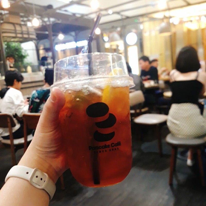 รีบจัดมากๆ เพราะมีเวลานั่งได้ 30 นาทีก่อนกลับบ้านเลยอดกิน แพนเค้กแบบ fluffy ที่ต้องใช้เวลาทำนานๆเลย เสียใจ แต่ไม่เป็นไรเรากินแบบแบนๆแทนก็ได้ บรรยกาศ🍽: ร้านเล็กเหมาะกับการมา 1-2 คน มาเป็นกลุ่มระวังที่นั่งตะไม่พอเอา ทำให้ในตัวร้านเดินไม่ค่อยสะดวกและอาจจะอึดอัดกันเล็กน้อย อาหาร🥞: แสกน qr เลือกเมนูบนโต๊ะก่อนแล้วไปสั่งกับจ่ายเงิน Lychee lemon Tea โอเคเลยมีความหวานอมเปรี้ยวกำลังดี กินแล้วาดชื่น...อ่านต่อ