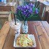 ผ่านมาผ่านไปหลายครั้ง เพิ่งจะมีโอกาสแวะ เป็นร้านขนมปัง ของหวานแนวใหม่ในสุโขทัยเลย บรรยากาศนั่งสบายๆ คะ เมนูก็มีให้เลือกเยอะพอสมควร สั่งเฟรนฟรายชีส กับชาเย็นมาลอง รสชาติเฟรนฟรายพอได้คะ ติดที่ชีสรสชาติแปลกไปนิด เหมือนใช้ชีสที่ยังไม่ค่อยดีเท่าไร ส่วนเครื่องดื่มก็พอใช้ได้ หวานไม่มาก ออกมันเข้มข้นกำลังดีดูเพิ่มเติม
