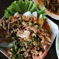 ร้านนี้เปิดมานานแล้วค่ะ ตั้งอยู่หลัง บขส.ด่านช้าง ทางเข้าอาจจะลึกซักหน่อย แต่มีป้ายบอกเรื่อยๆค่ะ ที่ร้านมีโซนด้านนอกกับโซนห้องแอร์ ด้านในห้องแอร์เป็นแบบปูนเปลือยก็น่านั่งดีค่ะ สำหรับรสชาติอาหารโดยรวมใช้ได้ค่ะ แต่ที่นี่รสมือจะออกหวานไปหน่อยนะ อย่างเช่น ปลากระพงทอดน้ำปลานี่น้ำราดหวานไปค่ะ แต่ปลาทอดมากรอบดีนะ แจ่วหมูก็หวานมากค่ะ ไม่จัดจ้านเลย ที่ถูกปากก็ต้มจืดปลาหมึกยัดไส้ อร่อยดีค่ะ ชิ้นใหญ่ดี ...อ่านต่อ