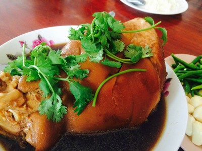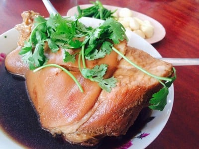 จะมาทานขนมหวานร้านป้ากี้ แต่แวะมาทานข้าวกันก่อนมากับเพื่อนๆสั่งขาหมูมา 1 ขา ได้มาขาใหญ่พอสมควรทานกัน 4 คนสบายๆ น้ำราดขาหมูรสจืดๆใสๆไม่ข้นไม่เหนียวไม่หวานในแบบที่เคยทาน เนื้อขาหมูนุ่มอร่อยดี ทานกับน้ำจิ้มก็พอข่วยได้เยอะดูเพิ่มเติม