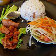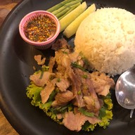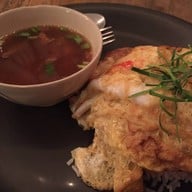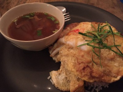 เคยขับรถผ่านช่วงกลางคืนเห็นคนเยอะเลยลองแวะมาชิม เมนูอาหารเข้าในคิดมีความผสมเมนูลงในอาหารจานเดียว ราคาอาหารไม่ถูกไม่แพง -ข้าวไข่เจียวห่อหมก+ซุปเปอร์ ไข่เจียวห่อหมกจะมีกุ้งและปลาหมึก -ข้าวมันส้มตำหมูทอด ข้าวมันจะเป็นข้าวผัดหอมเจียว(แบบหอมเจียวไก่ทอดหาดใหญ่) อร่อยดีค่ะ -ชากาเหลือง ถ้าจำไม่ผิดคือใช้น้ำตาลโตนดแทนน้ำตาลปกติ คล้ายๆชาเย็น รสหวานแปลก -ปังเย็นนมชมพู ขนมปังกรอบๆอร่อยดีค่ะ ตัวน้ำแข็งไม่ห...อ่านต่อ