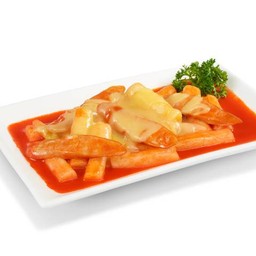 อุด้งผัดเบคอนและกิมจิซอสไข่กุ้ง