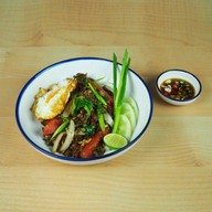 เรียกว่าเป็นอีกร้านที่ทำออกมาในรูปแบบที่ชัดเจน เลยค่ะ คงกลิ่นอายความเป็นร้านแบบย้อนยุค ทั้งการตกแต่ง และภาชนะค่ะ เมนูมีทั้งเป็นอาหารจานเดียว และเมนูอาหารไทย รวมถึงเครื่องดื่ม และขนม ให้ได้ลองรับประทานด้วยนะคะ รสชาติอาหารที่เราสั่งมาถือว่าใช้ได้ สำหรับเมนูข้าวคลุกน้ำพริกนรกผักสด เติมน้ำปลาอีกนิด ถือว่าเด็ดเลยค่ะ อีกจานข้าวยำไข่ดาวปลากรอบรสชาติค่อนข้างเีเลยค่ะมานกับข้างเข้ากัน ต่อด้วยขนมเขีย...อ่านต่อ