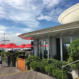 ร้านอยู่บนดาดฟ้าของโรงแรมมารีน่าเบย์แซนด์ ได้ขึ้นไป drink and some snacks, canapés บรรยากาศดีมาก ถ่ายรูปวิวเมืองสิงคโปร์ วิวทะเลสวยงาม เห็นเมืองไปได้ไกลเหมือนกันค่ะ ที่นั่งมีทั้งข้างนอกข้างใน ส่วนใหญ่คนละเลือกนั่งข้างนอกเอาบรรยากาศดูเพิ่มเติม