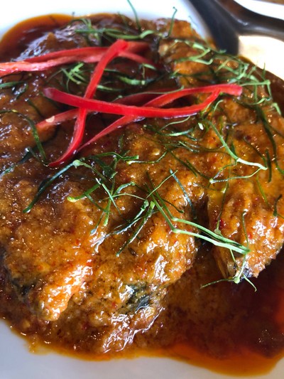 มาตามใบสั่ง ตามเพจแนะนำของวงใน ต้องเรียกว่า ตั้งใจมา เพราะทำเลที่ตั้งเป็นเอกเทศ ไม่ใช่แบบมีหลายๆเจ้าชุมนุมในแถบเดียวกัน ลานจอดรถกว้างขวาง จอดสะดวก บรรยากาศร้านปลอดโปร่ง ลอยลำอยู่ในวังน้ำที่เลี้ยงกุ้งหอยปูปลา ลมโกรกเย็นสบาย ช่วงเย็นย่ำค่ำจะยิ่งน่าพิสมัยนักแล ... เมนูหลากหลาย เน้นอาหารไทยพื้นบ้าน # น้ำพริกกะปิ ใบชะครามราดกะทิและปลาหมอเทศแดดเดียวทอด 150.- จานนี้ควรต้องสั่ง ส่วนตัวชอบปลาหมอเทศแด...อ่านต่อ