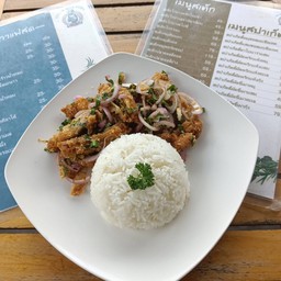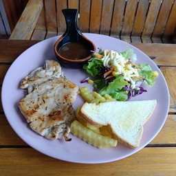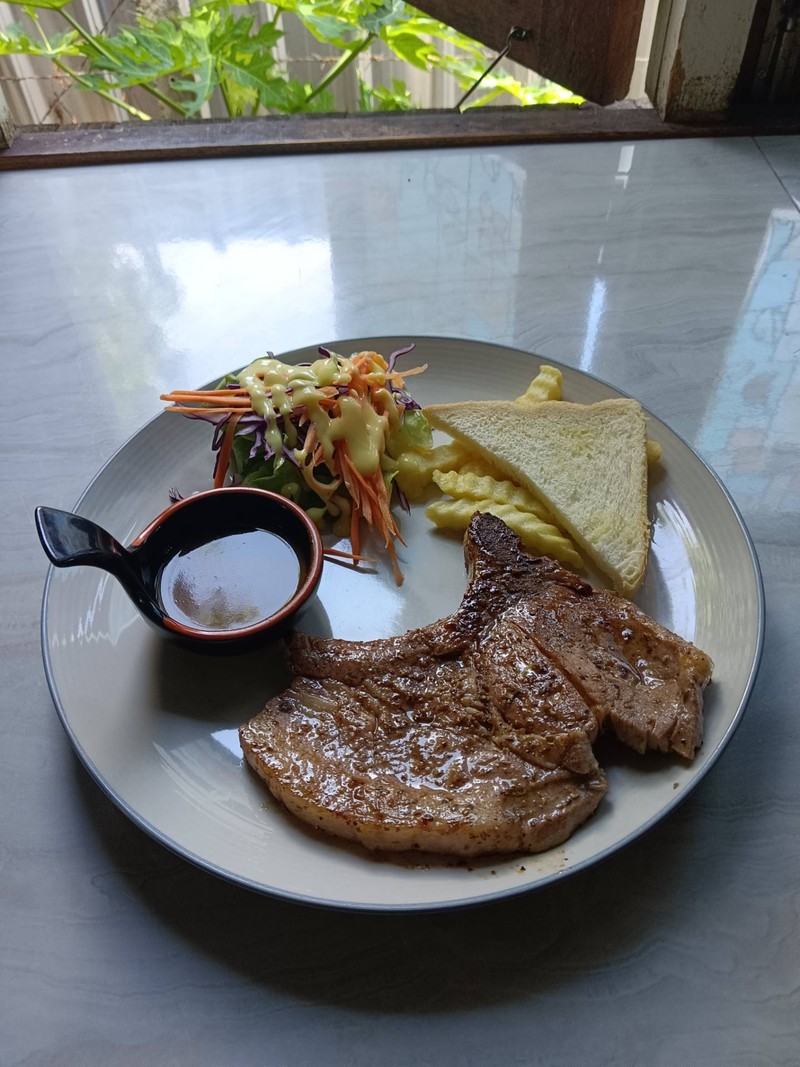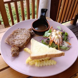 100% ของรีวิวบอกว่าร้านนี้เหมาะกับ เพื่อนฝูงร้านอยู่ เข้าไปลึกจากถนนใหญ่พอสมควร แต่บรรยากาศร่มรื่น อาหารหลากหลาย มีทั้ง สเต็กและอาหารตามสั่ง - อาหารตามสั่งได้เร็ว รสชาติ อร่อย ราคาไม่แพง - สเต็ก รอนานหน่อย ปรุงรสได้อร่อยเสียดายหมูเหนียวไปนิดหน่อย - นักเก็ตไก่ แปลกดี ปกติจะเจอเป็นไก่บด แต่ที่นี่เหมือนเป็นไก่ชุบแป้งทอด กรอบๆ แต่รสชาติจะไม่เข้าเนื้อไก่ - มันบด เนื้อรสเอียดได้กลิ่นนมจางๆ หอมเลย แต่ปรุงรสไม่เข้าเนื้อ แต่น้ำเกรวี่ทำได้กำลังดี...อ่านต่อ