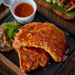 มาทานร้านนี้ในช่วงเวลาเกือบสามทุ่ม ของคืนวัน Valentine 2017คนค่อนข้างเยอะ โต๊ะนั่งด้านในร้านเต็ม ต้องเปิดโต๊ะนั่งรออยู่ด้านหน้าร้านก่อน สักพักพนักงานก็มาตามเมื่อมีโต๊ะว่างแล้ว สำหรับบรรยากาศด้านในคึกคักมาก พนักงานต้องคอยเดินบริการกันขวักไขว่ และอาหารตามเมนูแนะนำหลายๆอย่างก็หมดไปแล้ว เราจึงสั่งอาหาร ตามเมนูดังนี้ - เนื้อสันนอกโพนยางคําย่างซอสสมุนไพรไทย 320 บาท เสียดายย่างสุกไปหน่อย เนื้อเลยแข็งแ...อ่านต่อ