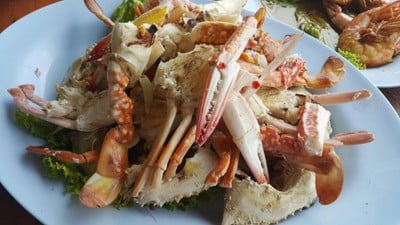 ร้านอาหารทะเลที่ซุกๆอยู่ย่านอ่างศิลา บรรยากาศติดทะเล ความสดโอเค ราคาตามขนาด เรียกว่าสูงแต่ไซด์ใหญ่ 4 ดาวของย่านนี้นะค่ะ ร้านนี้ หากมาจากทางตัวเมืองชล จะตั้งอยู่ใกล้ๆจะถึงทางแยกเขาสามมุก สังเกตป้ายดีๆ ขับเข้าไปในซอยอีกแพบบ ก็จะถึงร้าน ร้านตั้งอยู่ติดทะเล มีที่นั่งเยอะ เป็นร้านใหญ่ มีของสดในบ่อให้เลือกสั่งกันได้ เช่น ปู กั้ง ปลา หอยตลับ หอยหวาน กุ้งคั่วน้ำปลา ( ครึ่งโล 4 ตัว 450-) จาน...อ่านต่อ