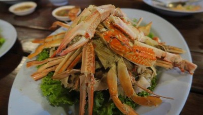 เปี๊ยกมันทะเล ร้านอาหารทะเลชื่อดัง แถวอ่างศิลา ร้านกว้างขวาง ติดทะเล เน้นของทะเลสดๆ แต่เราว่าบริการต้องปรับปรุงนิดนึง อาจเป็นเพราะคนเยอะ พนักงานหน้าบึ้ง เสียงแข็ง เรามาดูอาหารกันดีกว่า วันนี้สั่งกันเยอะมาก เริ่มจาก กุ้งคั่ว 1 โล 900 บาท กุ้งตัวใหญ่ เนื้อแน่น สด อร่อยผ่านค่ะ ปูม้านึ่ง 1.2 โล 840 บาท แกะมาพร้อมกิน สด เนื้อแน่น จิ้มกับน้ำจิ้มซีฟู้ด อร่อยผ่านค่ะ น้ำพริกไข่ปู 200 บาท อันนี้ นัวม...อ่านต่อ