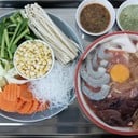 เราสั่งชุดเล็กมาลองก่อน เสิร์ฟมาพร้อมกับผักสด 5 อย่างคือ ข้าวโพดแกะเม็ด วุ้นเส้น ผักบุ้ง เห็ดเข็มทอง แครอทและผักกาดขาว ส่วนเนื้อมาในชามพร้อมกับไข่ที่ตอกมาแล้ว