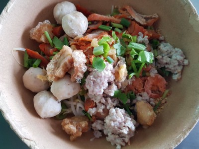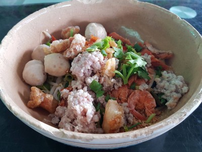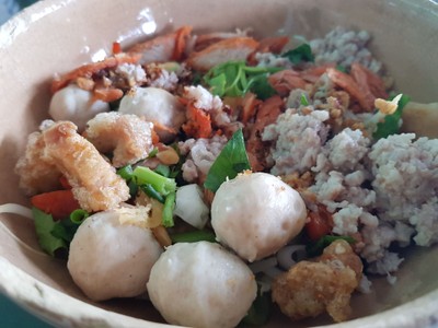 บอกก่อนว่า เป็นก๋วยเตี๋ยวที่รสชาติดี แต่ก็ทั่วไป เพราะที่น่าสนใจจริงๆ คือชุดก๋วยเตี๋ยวโอ่ง 199 บาท การจัดชุด นี่แหล่ะ โคตรคุ้ม คุ้มแล้วคุ้มอีก 3คน สบายๆ เลยจร้า รสชาติไม่ได้แย่นะ ดีอยู่ปริมานเยอะ อีกอย่างทีอยากให้ลอง เกาเหลาแห้งยำ โคตะระดี หวานนิดๆเปรี้ยวหน่อยหอมกลิ่นมะนาว ราคาน่าจะ45-50 นี่แหล่ะ(พิเศษ) ไม่แน่ใจนะ แต่ดี คอนเฟิมจ่ะ อ้อ ใครเห็นรถแน่นๆ ไม่ต้องกลัวไม่มีที่จอดนะ ข้างหลังเป็นลานโล่ง...อ่านต่อ