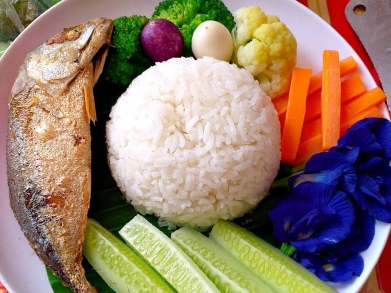 กะเพราถาดพริกแห้งสูตรคุณแม่(ใช้ข้าวหอมมะลิแท้ตราไดโนเสาร์)