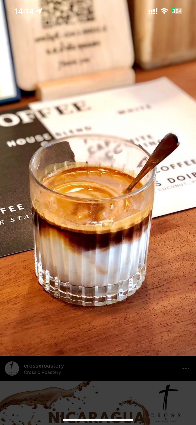 ร้านคาเฟ่ cross x roastery เลี้ยวเข้ามาจากถนนสุขุมวิทนิดนึงค่ะ จอดรถหน้าร้านได้เลย วันนี้สั่ง white coffee (80บาท) รสชาตินัวๆ นมมันๆค่ะ กาแฟหอมใช้ได้เลย เจ้าของร้านอัธยาศัยดีค่ะ มีน้องแมวน่ารักๆด้วย เห็นมีขนมปัง sourdough อยู่ น่ากินเลย ไว้จะมาลองค่ะ #WongnaiDessertDrinkSpecialist #CoffeeSpecialistดูเพิ่มเติม