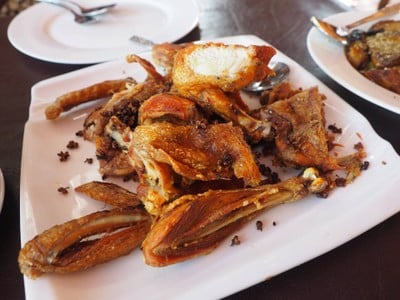 ตามมาจากหนังสือท่องเที่ยว น่าน ผ่านมาเลยจัดซะหน่อย สั่งอาหารไปสามอย่าง ไก่ทอดมะแขว่น (เมนูแนะนำ) ไก่รู้สึกว่าจะเป็นไก่บ้านหมักกับมะแขว่น ทอดจนเหลืองกรอบ หอมเครื่องเทศที่หมัก รสชาติเข้าเนื้อ แต่แอบทอดนานนิดนึง แกงเขียวหวานปลาดุกกรอบ (เมนูแนะนำ) แกงเขียวหวานน้ำพอขลุกขลิก ท๊อปด้วยปลาดุกทอดกรอบ รสไม่จัด เด็กทานได้ ผู้ใหญ่ทานดี น้ำพริกสามอย่าง (น้ำพริกอ่อง น้ำพริกหนุ่ม น้ำพริกหมูมะแขว่น(มั้ง)) จา...อ่านต่อ
