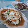 ..เบื่อซีฟู้ด สลับมากินของแซ่บๆบ้าง ร้านนี้เป็นร้านใหญ่ อยู่ฝั่งซ้ายมือจากชะอำมุ่งหน้าหัวหิน จอดรถสะดวกมากไม่ต้องแย่งใคร อาหาร+บริการใช้ได้เลย -ส้มตำปู 50฿ แซ่บมาจานใหญ่ ใช้ทั้งพริกแห้งพริกสด(สั่งเอาเเบบเผ็ดๆ)ใส่ปูเค็มตัวใหญ่มาให้2ตัว -ตำข้าวโพดไข่เค็ม 70฿ จานนี้นัวๆนวลๆกลมกล่อมถูกใจ ทั้งข้าวโพดทั้งไข่เค็มมาเต็ม คุ้มราคา -ไก่ย่าง ครึ่งตัว95฿ หนังกรอบอร่อยดี แต่เนื้อข้างในแห้งไป,จืด ไม่ค่อยมีร...อ่านต่อ