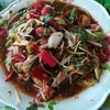 ร้านนี้ปลาร้านัวมากๆหอมมาแต่ไกลเลย ความสะเด็ดสะแด่วของร้านนี้ คือ ส้มตำปูปลาร้าคะ she กำพริกลงไปโขลก แบบไม่ต้องนับเม็ดเลยค่ะ 😲😲😲 เลยทำให้ส้มตำจานนี้ เป็นอย่างที่เห็นในภาพคะ พริกฟูฟ่อง ส่วนรสชาติขอบอกว่าอร่อยเด็ดมากๆ กินไปร้องไห้ไป รู้สึกดีค่ะ😬😬 ส่วนหอยนาจานนี้หอยหวานมากๆค่ะ อาจจะดูว่าหอยดำไปหน่อย แต่ความอร่อยเกินคาดนะคะ เนื้อแห้งและหมูแห้ง ( คนอีสานเค้าเรียกแบบนี้ค่ะ) หรือเรียกอีกอย่างห...อ่านต่อ