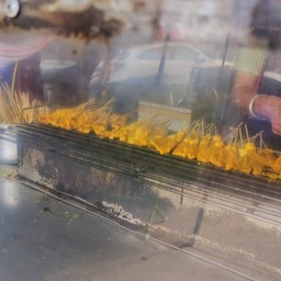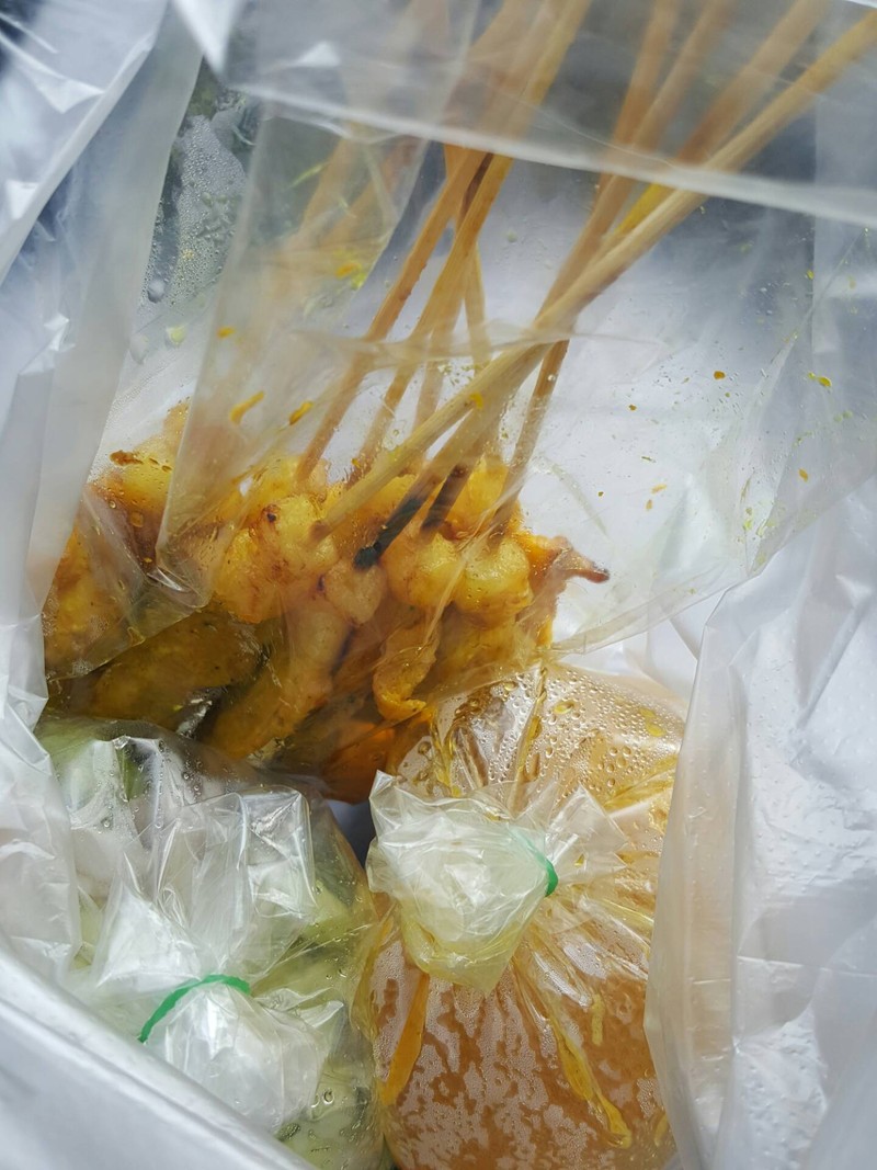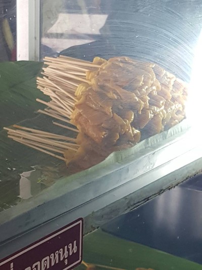 หมูสะเต๊ะ อาหารว่างที่ใครๆก็ชื่นชอบ กินง่าย จิ้มน้ำจิ้มถั่วบดที่ใส่เครื่องแกงเข้มข้น เผ็ดนิดๆเครื่องถึง ว่างั้น พร้อมอาจาดแตงกวาพริกชี้ฟ้าใหญ่สดๆ เด็กกินได้ ผู้ใหญ่กินเยอะ 55 อร่อยหายหิวกันเลยทีเดียว ร้านนี้ปิ้งกันควันโขมง ร้อนๆ ใหม่ๆ ราคาก็มิตรภาพ 2.50 บาท หมูนุ่ม หอมกลิ่นหมัก สีเหลืองทอง มีมันติดก้นไม้เล็กน้อยพอให้ได้ไขมันกระจายเต็มปาก อืมมมมดูเพิ่มเติม
