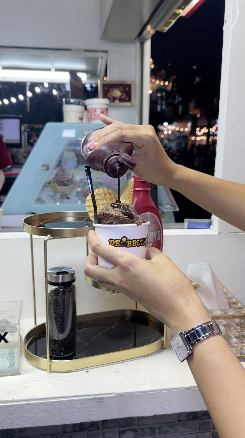 เดอบิวแลนช์ ไอศกรีมโฮมเมดทั้งหมดทุกรสชาติและดับเบิลช็อกโกแลตที่เราสั่งมาแล้วราดช๊อก โรยท๊อปปิ้งได้เองไอศกรีมหนืบมากอร่อยฉุบดูเพิ่มเติม