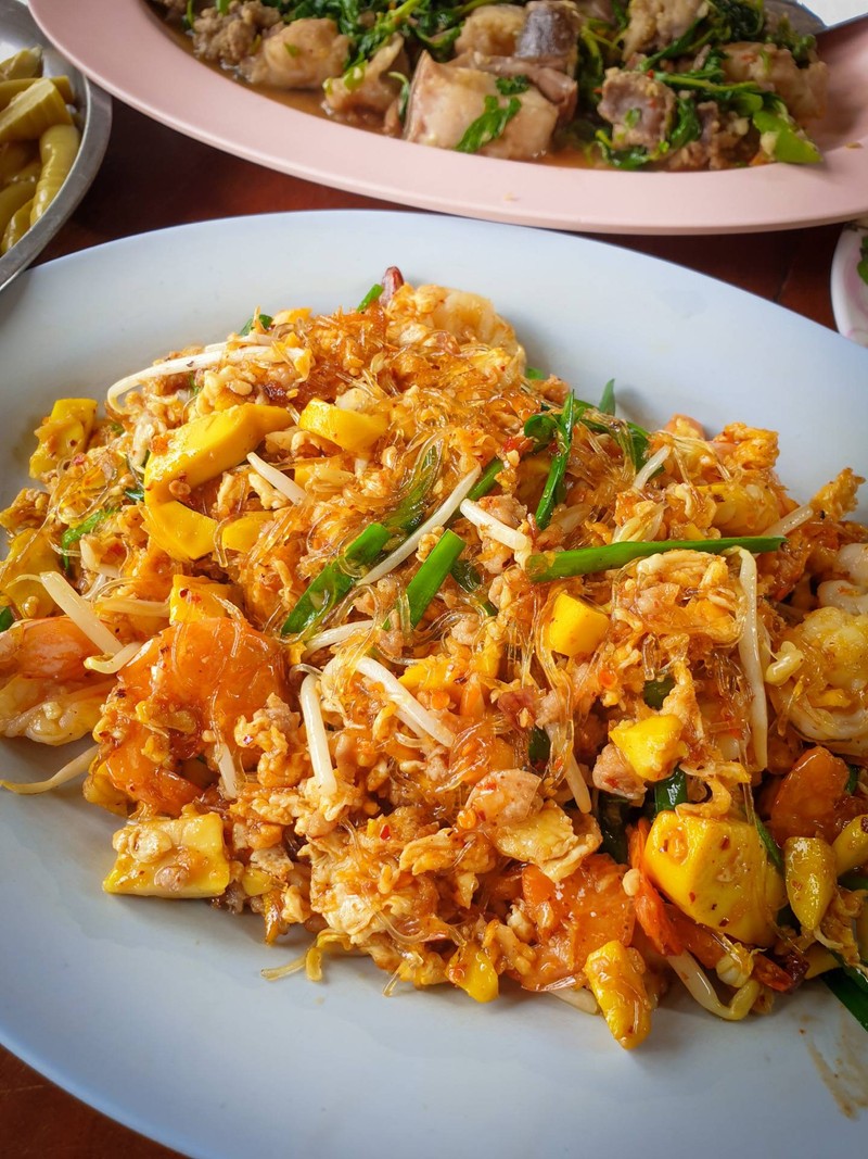 เปิดอ่านรีวิว เห็นร้านนี้อยู่ไม่ไกลที่พัก เลยลองสั่งอาหารเมนูเที่ยงแบบเบาๆ ไปก่อน มากัน 2 คนสั่งได้ไม่เยอะ ทีแรกกะจะกินอาหารจานเดียว เลยเล็งวุ้นเส้นผัดไทยไว้คนละจาน ปรากฎว่าคนขายเบรคไว้จานมันใหญ่ สั่งแค่จานเดียวมาแบ่งกันได้ แล้วก็เป็นจริงตามนั้นครับ มาแบบจานเปล รสชาติครบรสดีแบบไม่ต้องปรุงเลย ตินิดเดียวคือมันติดเผ็ดไปหน่อย ถ้ากลับมาใหม่จะขอลดพริกป่นหรือไม่ก็ช่วยแยกมาให้ปรุงเองดูเพิ่มเติม