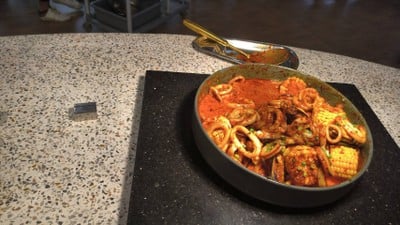 เป็นร้านใหม่ ที่ตอนเรากลับบ้าน ลงทางด่วนบางนา วิ่งตรงมาทางสำโรงจะเห็นอยู่ด้านซ้ายมือ ถนนช่วงลาซาลค่ะ แรกๆที่เราเห็นก็มีคิว เลยน่าสนใจค่ะ วันนี้ ตื่นเต้นจัด ไม่ได้ถ่ายเตาเลย ถ่ายมาแต่อาหารทานเล่น ต้องขออภัยด้วยค่ะ ส่วนตัวเราว่า เหมาะสมกับราคาค่ะ อาหารถือว่าหลากหลายอยู่นะคะ ไม่ว่าจะเป็นพิซซ่า ยำเอย สายทอดเอย ไม่เลวเลยทีเดียวค่ะ มีน้ำจิ้มหลายหลาก อาหารทะเล กุ้ง หอย ก็มีให้เลือกเยอะค่ะ โอเคเลย คุณ...อ่านต่อ