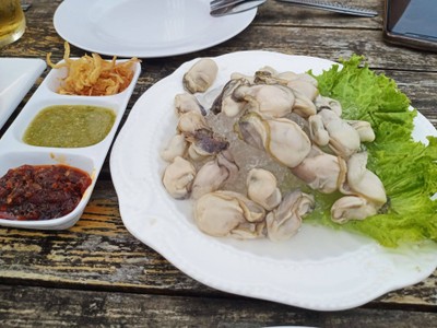 เที่ยวกันจนร้อน เหนื่อยและหิว ให้คนขับรถพามาที่ๆอร่อยๆ เขาพามาที่นี่ ตอน11.00 วันธรรมดา ที่ร้านไม่มีคนเลย ดีๆๆๆ อาหารมา ไม่ว้าวเท่าไรค่ะ ปกติเลย จานเล็กด้วย อาจจะให้ทุกคนเข้าถึงเนอะ ทอดมันกุ้ง ชิ้นเล็กมาก ไม่ประทับใจ ยำทะเล อร่อยค่ะ หมึกผัดไข่เค็ม อร่อยเนื้อเด้ง ต้มยำ แกงส้ม ปลานึ่งมะนาว ปกติค่ะ ถ้ามากลางคืนน่าจะบรรยากาศดีกว่านี้ค่ะดูเพิ่มเติม