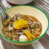 พิกัด ด้านในปั๊มปตท.แอลพีจี ริมถนนสายเอเชียฝั่งขาขึ้น กม.26 ก่อนถึงสะพานบ่อโพง บรรยากาศ ร้านเปิดโล่ง ไม่ร้อนอบอ้าว ไม่มีแอร์ ตอนที่ไปทานลูกค้าไม่มาก นั่งโต๊ะปุ๊บพนักงานมาคอยรับออเดอร์สักพักน้ำแข็งมาเสิร์ฟ เมนูที่สั่ง -เส้นหมี่เย็นตาโฟ ราคา 50 บาท กลิ่นเต้าหู้ยี่แรงไปหน่อย จานนี้ไม่ได้ทานเอง และไม่ทันได้ชิมก่อนปรุง -บะหมี่หมูตำลึงต้มยำ ราคา 40 บาท จานนี้ไม่ได้ทานเอง ชิมน้ำซุปรสชาติทานได้ -กระด...อ่านต่อ