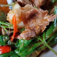 วันที่ไปลูกค้าทยอยมาจนเต็มร้าน แถมมีลูกค้าโทรสั่งกลับบ้านอีกด้วย รออาหารค่อนข้างนานทีเดียว น่าจะประมาณ 40 นาที ขอรีวิวเริ่มจาก - ปลาทับทิมสมุนไพร สมุนไพรเยอะจริง แต่หั่นมาชิ้นใหญ่ๆ -แกงเลียง เสียดายรสหวานไปนิด ตัวน้ำแกงเข้มเครื่องแกง - ยำดอกขจร รสชาติ หน้าตาเหมือนยำถั่วพลูทุกอย่าง อร่อยดี - กระเฉดไฟแดง กระเฉดอ่อนเยอะกว่าแก่ๆ รสเค็มนำ - กบทอดกระเทียม อันนี้ไม่ผ่าน น้ำมันเยิ้มเลย - เฉาก๊วย ผ...อ่านต่อ